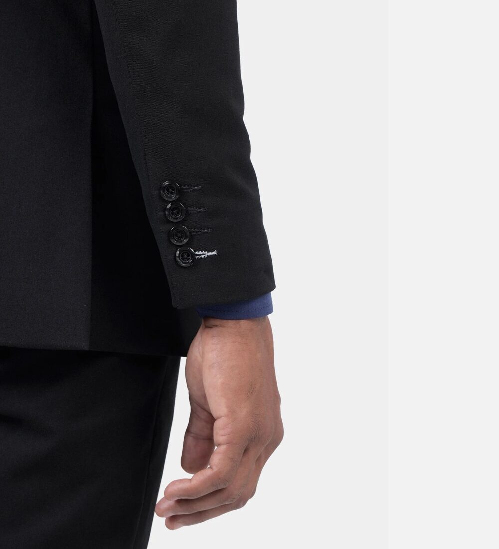 Twin vents for ease of movement, and sleeve cuffs with four buttons.