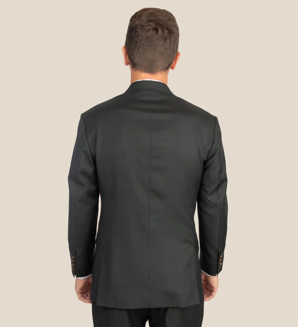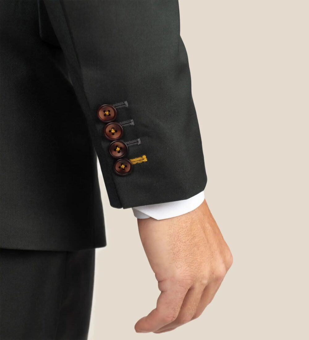 Twin vents for ease of movement, and sleeve cuffs with four buttons.