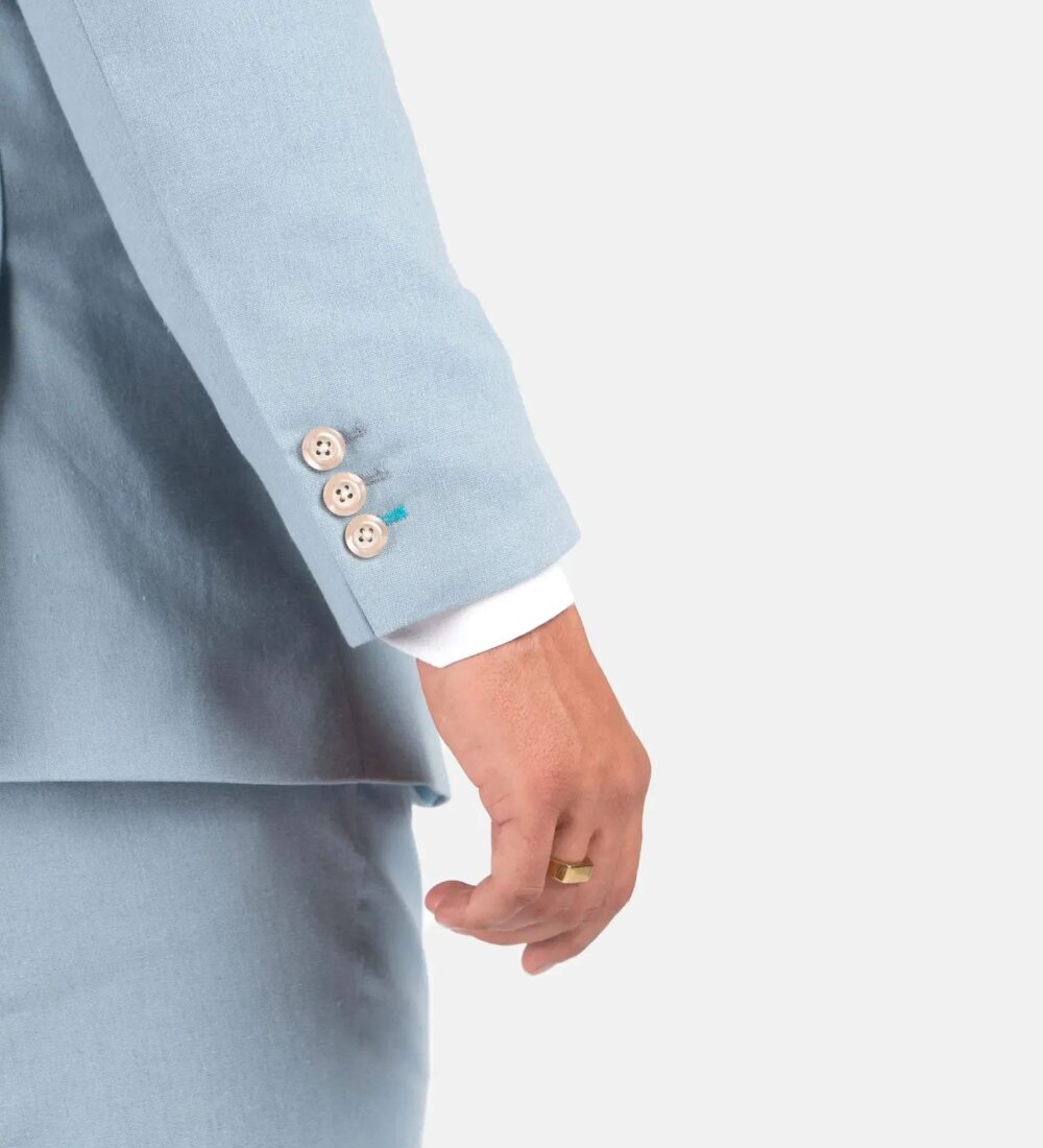 Twin vents for ease of movement, and sleeve cuffs with three buttons.