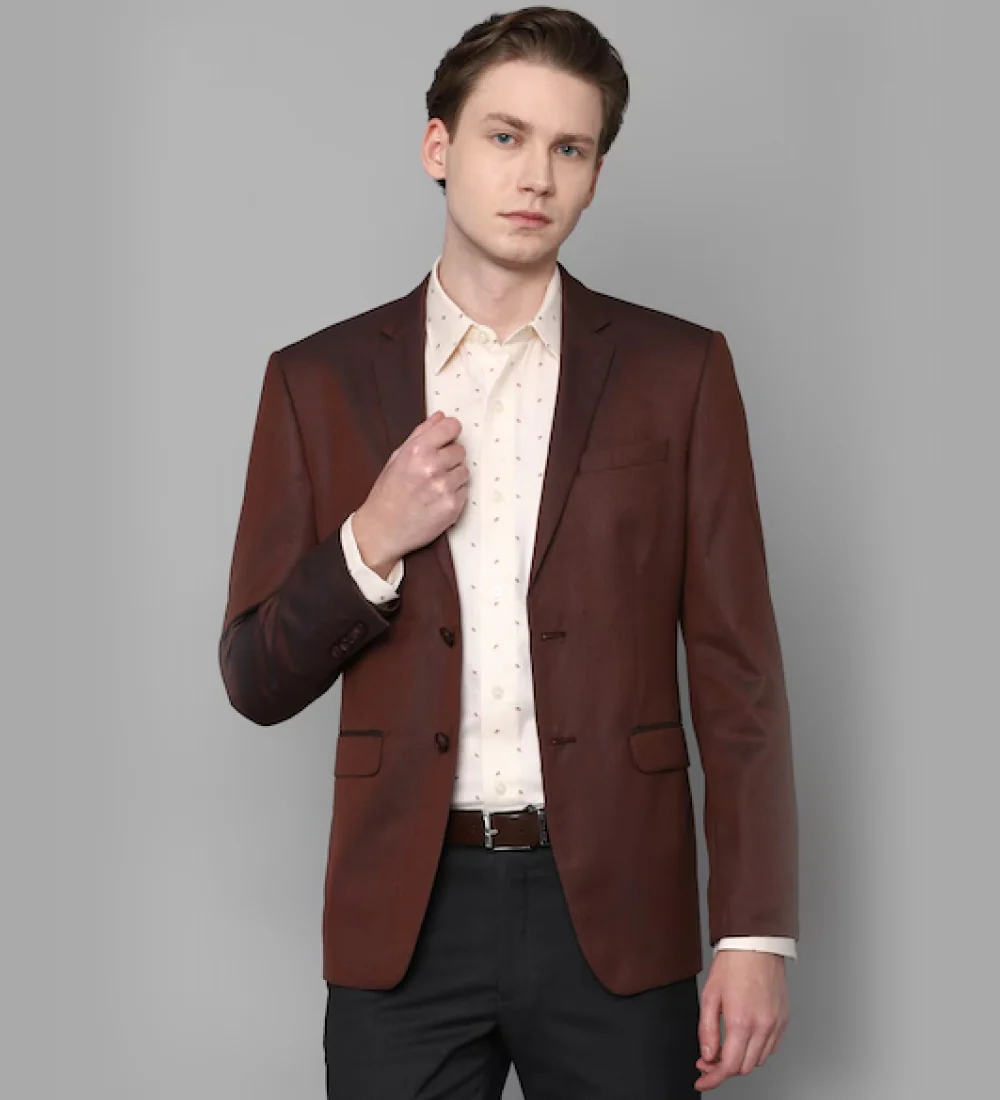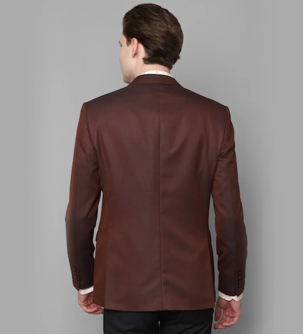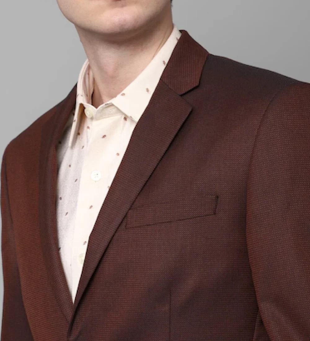 Classic notch lapels with standard pocket styling.